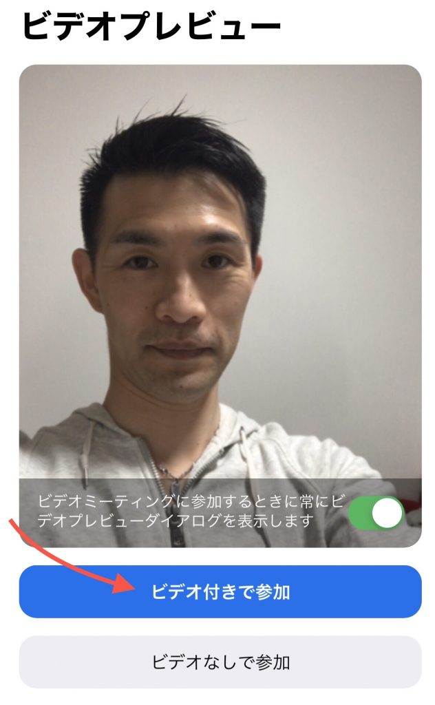 6.カメラ写りを確認して、ビデオ付きで参加!