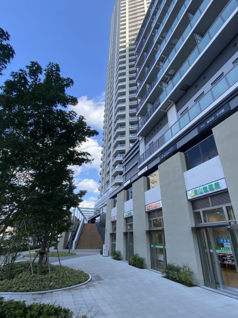 駅前にそびえ立つ2つの高層マンションの左側の建物で、サークルでは第1集会室を使っています